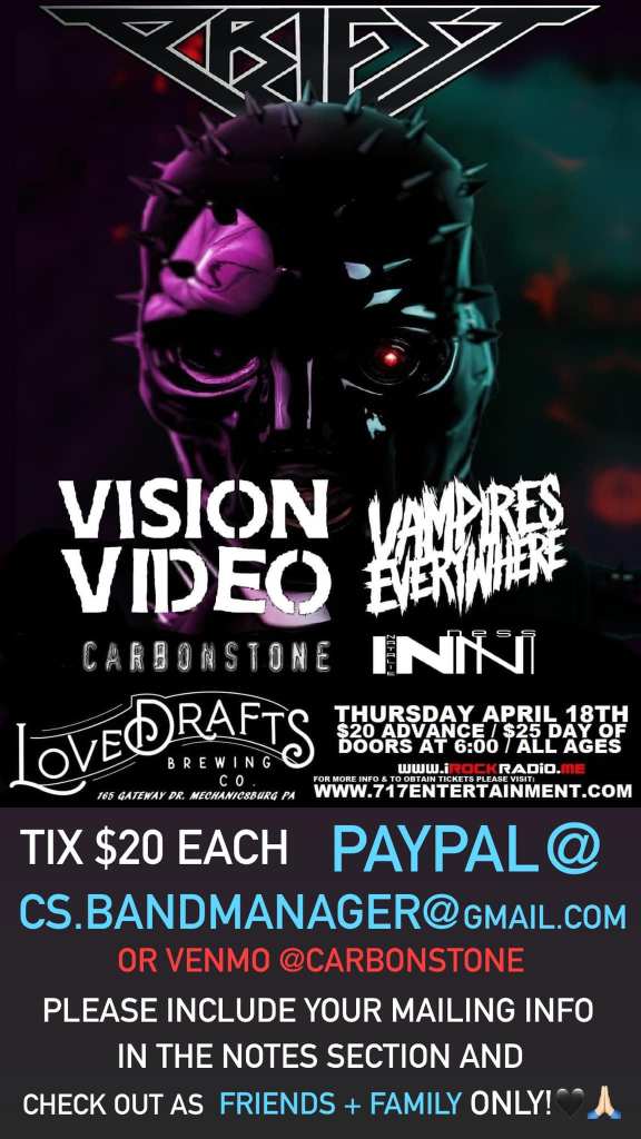 Now that the first song of 2024 is out, CARBONSTONE isn’t about to slow down anytime soon. Corey says he actually recently finished writing a “really wicked” song that needs to be recorded immediately, so they’ll be jumping back into the studio in March. There are also some cool shows booked. One of those will be Thursday, April 18th, at Lovedrafts Brewing Company in Mechanicsburg, Pennsylvania near Harrisburg, with Priest, Vampires Everywhere, Vision Video and Natalie Ness. Make sure to follow CARBONSTONE so you don’t miss the excitement to come!