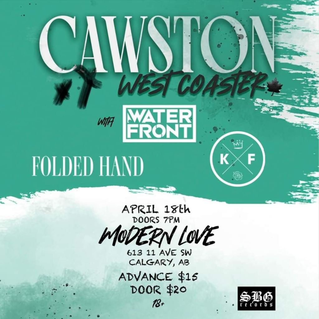 Waterfront has a show Thursday, April 18th with Cawston, Folded Hand, and King Fabbs at Modern Love YYC in Calgary.