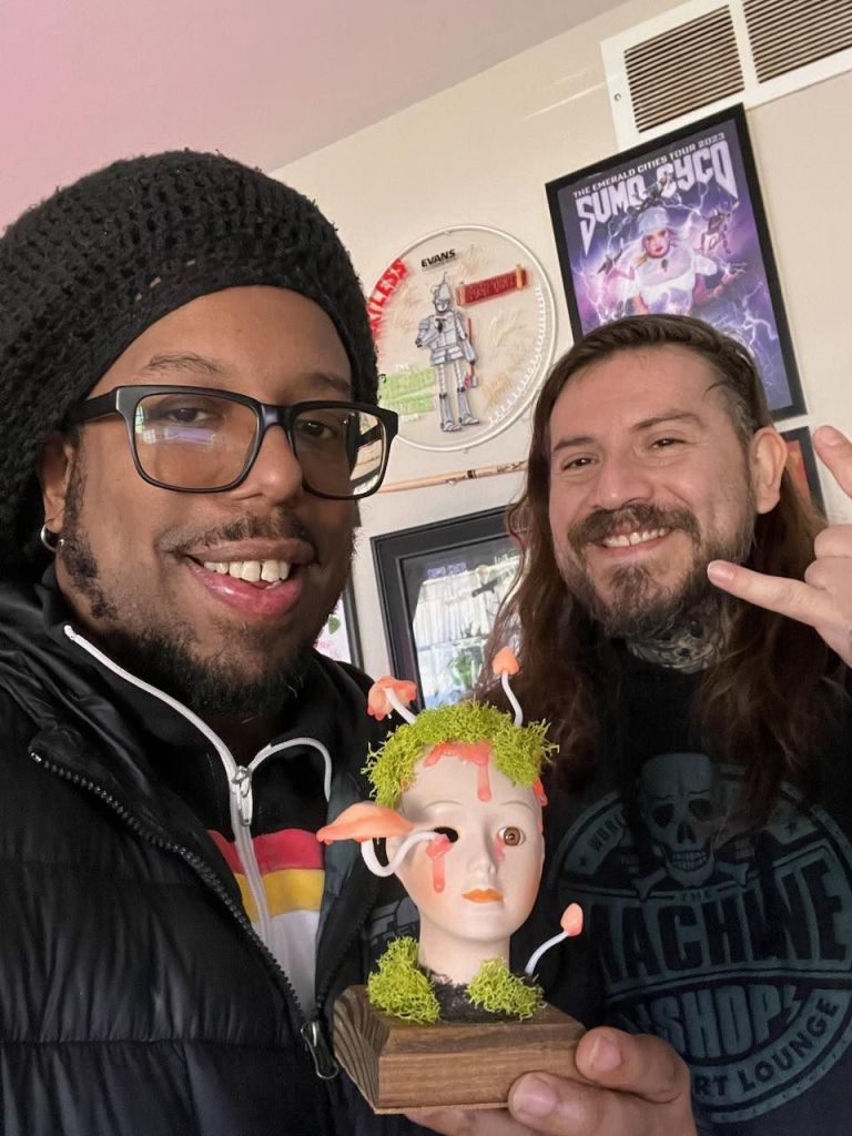 Andy has made many friends since he got injured, including the people that took care of him in the hospital. He’s still in contact with them. Other new friends include the aforementioned guys from The Itch podcast. At a Nonpoint show in Chicago back in December, members of the 361 Degrees group came from Wisconsin just to see him. He also was supported by fans of Sevendust. Andy’s friend Ollie Besinger took care of his cats and his house when he was away, and has also been very supportive of the art that Andy is creating. The art is something that not only is helping Andy make some money, but it is also helping him cope with PTSD. The support of all of his friends has been so important to Andy, because his family is in Mexico.