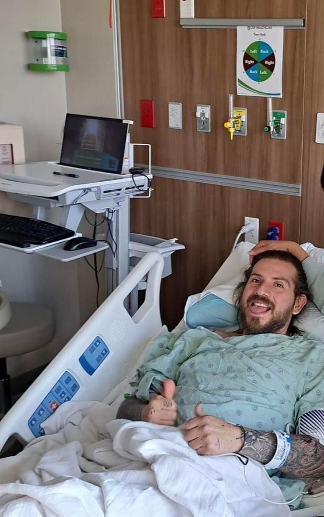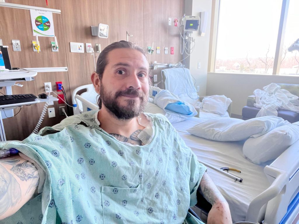 Other concert-goers risked their lives to dig Andy out and save him. He remembers seeing light and feeling air. One guy grabbed Andy’s right hand and the others were lifting a big piece of concrete. That piece broke and fell on top of him again. Finally, they pulled him out and other people started caring for him. He couldn’t walk, and the pain came. A paramedic tagged him, and he remembers riding in the ambulance and a mask being put on him. After that he didn’t wake up until Wednesday. He was in so much pain and was told that he had been in an induced coma. He spent one month in OSF Saint Anthony Medical Center in Rockford, Illinois, and was transferred to OSF Saint Paul Medical Center in Mendota, Illinois, where he was for another month.