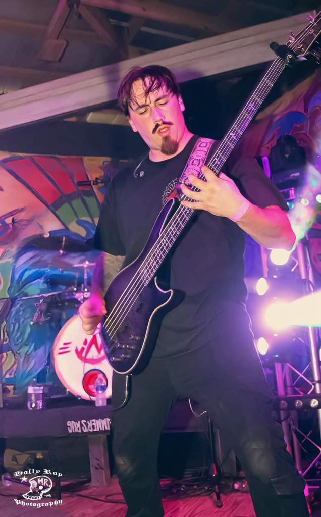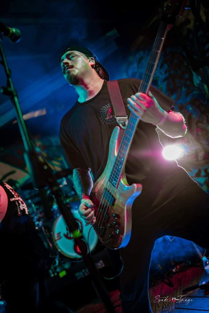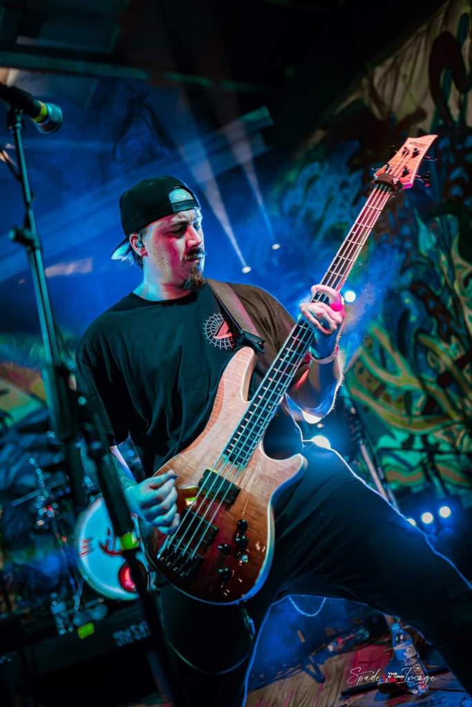 Chance started learning how to scream and do some basic songwriting. He believes he progressed as a musician a lot in a few short months, though he admits that what he recorded sucked. The growth was important, however, because he was able to show his dad what he was doing musically, which he believes ultimately is what led him to being in Etched In Embers. A good friend of his and EIE guitarist Tyler Kenyon’s, Doug, had mentioned to Tyler that since the band was without a bass player and looking they should ask Chance. Chance thinks Doug must have been following the videos he would post. So Chance tried out for EIE, learning the songs by ear for the most part, and the rest, as they say, is history! His first real show after joining the band in June of 2021 other than a local one they did was The Sound 228 Dirty Thirty Fest in 2021. They followed that up by opening for Drowning Pool.