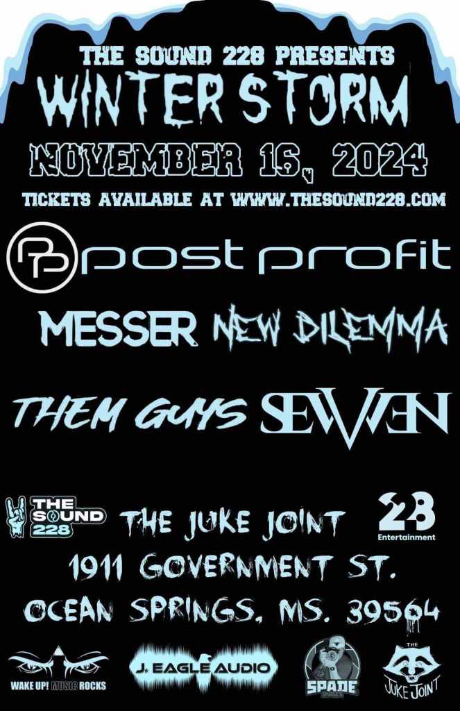 Also, the band was just added to the lineup of The Sound 228 Winter Storm festival Saturday, November 16th, at The Juke Joint in Ocean Springs, Mississippi. They will be part of an awesome lineup which also includes Post Profit, Messer, New Dilemma, and THEM GUYS.